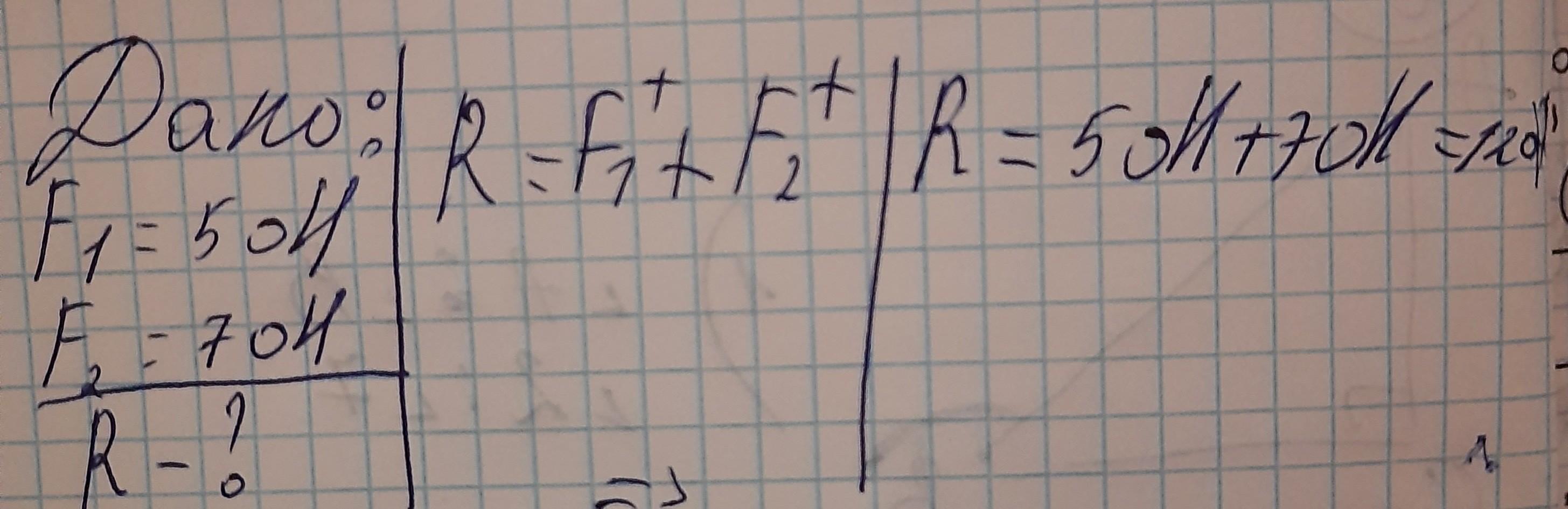Два хлопчика тягнуть санки,прикладаючи горизонтальні сили 50 і 70H, напрямлені вздовж однієї прамої. Яким може бути значення рівнодійної цих сил?