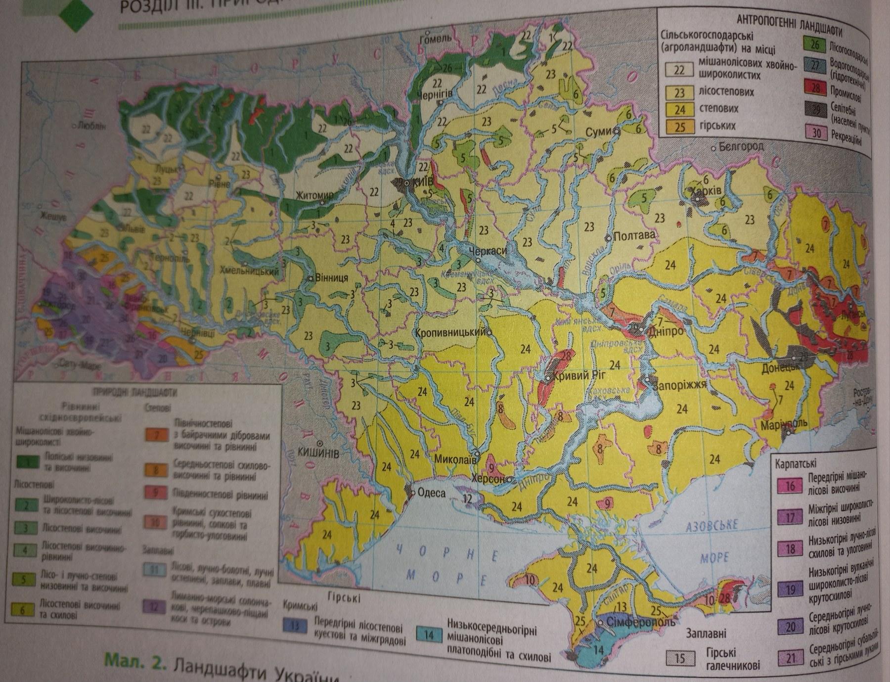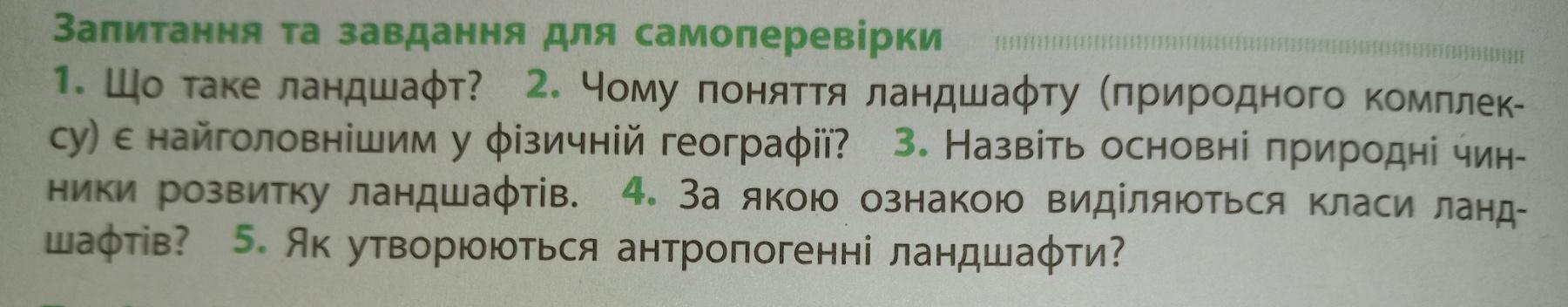 5-антропогенні ландшафти — як заново створені ландшафти, так і ті природні комплекси, в яких корінних змін зазнав будь–який з його компонентів