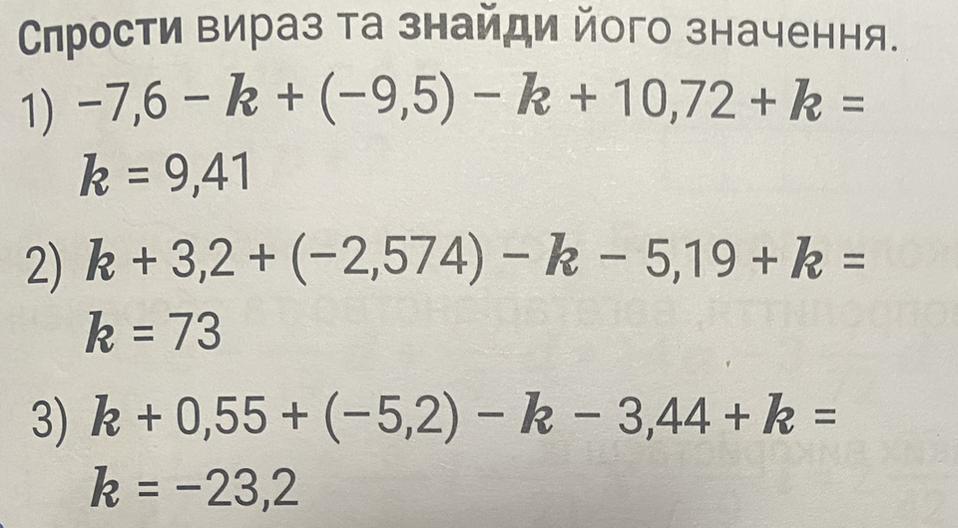 1) -7,6 - к + (-9,5) - к +10,72 +к = -7,6 - к -9,5 - к +10,72 +к= -6,38 -к