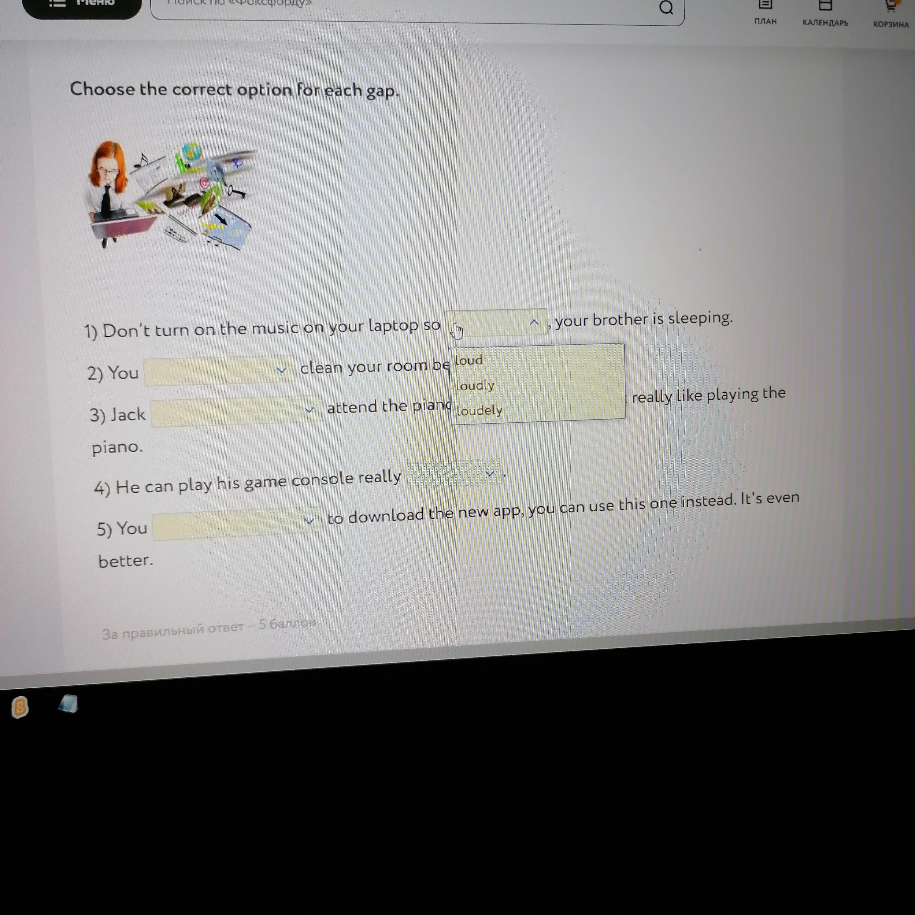 Відповідь:1)loud 2)should 3)has to4)well5)have to