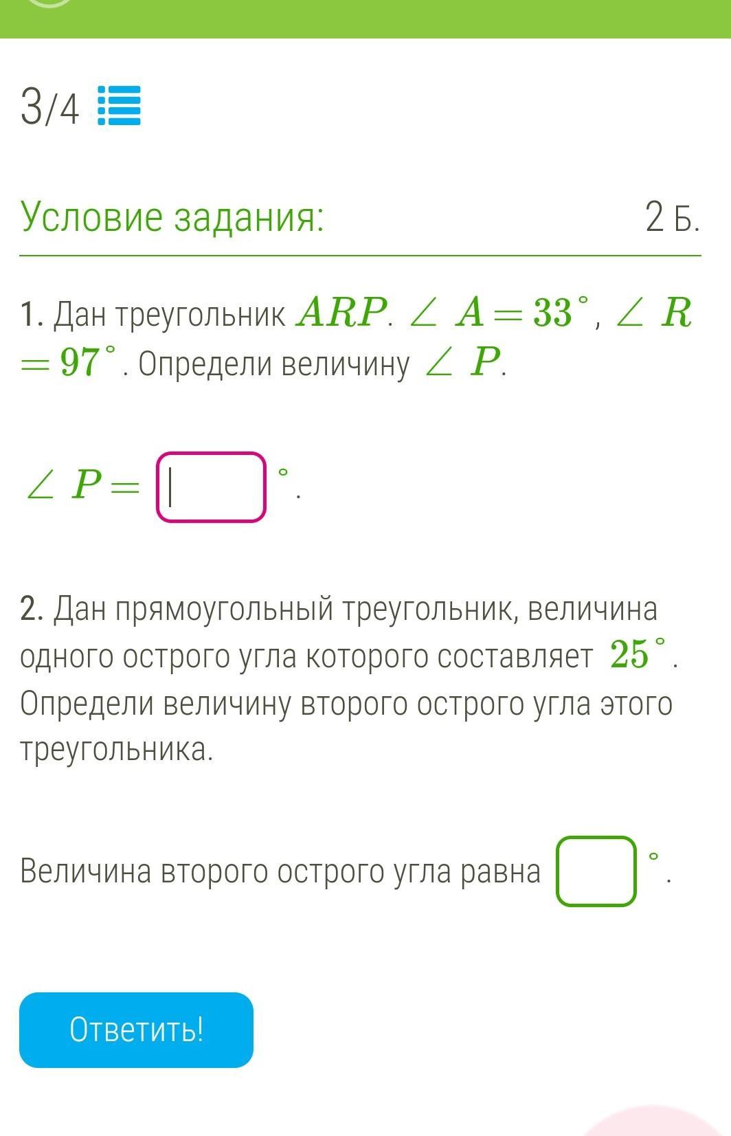 2. Сумма острых углов в прямоугольном треугольнике равна 90°