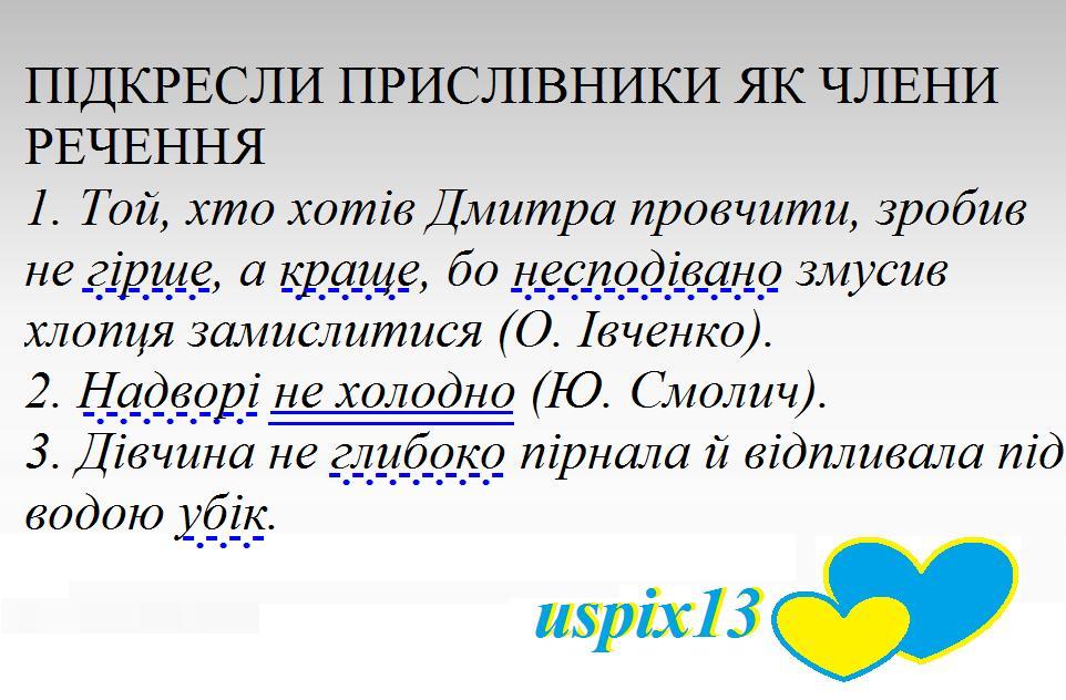 ПІДКРЕСЛИ ПРИСЛІВНИКИ ЯК ЧЛЕНИ РЕЧЕННЯ