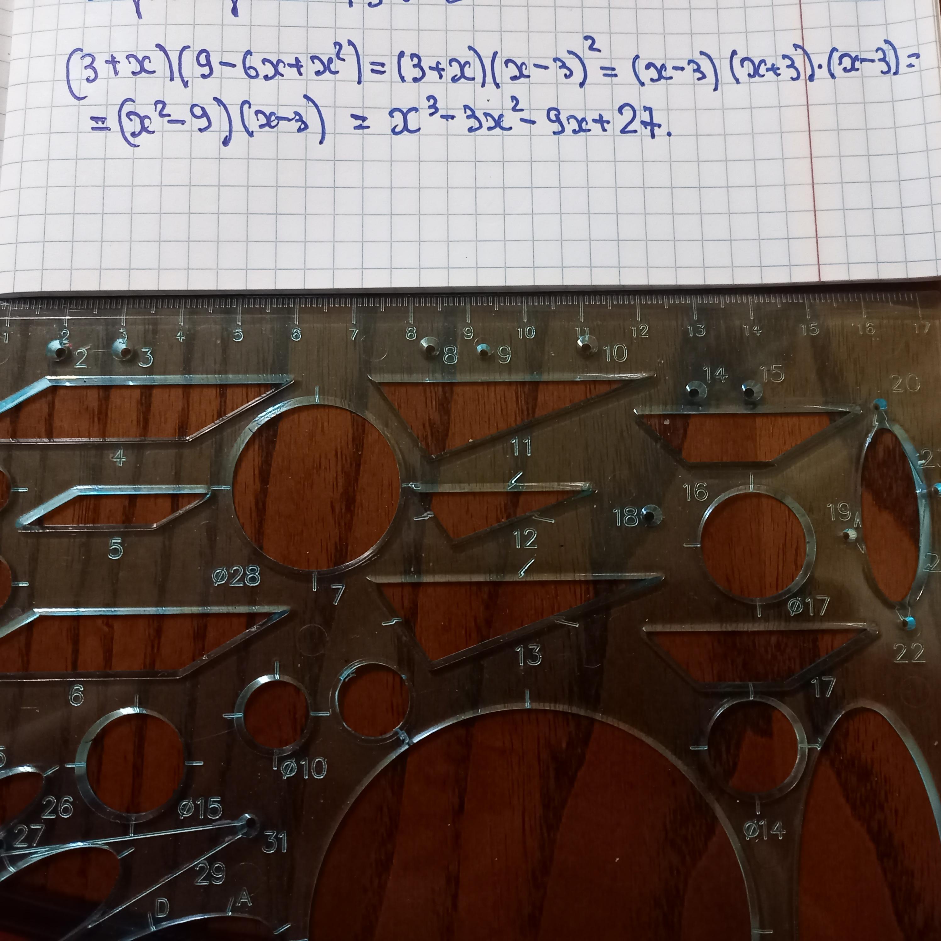 (3+x)(9-6х+х²)=27-18х+3х²+9х-6х²+х³=