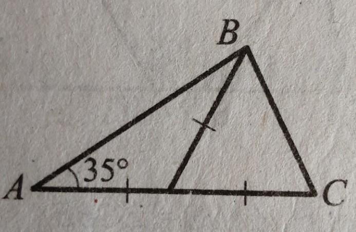 <В=35 ; внешний угол ∆АВО равен 70. В ∆ОВС, <В+<С=180-70=110. И эти углы равные.