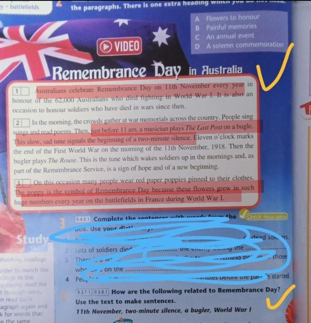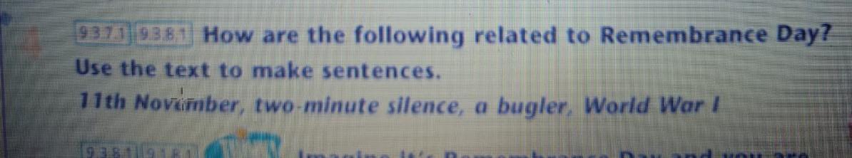 9371 9381 How are the following related to Remembrance Day? Use the text to make sentences. 11th November, two-minute silence, a bugler, World War I