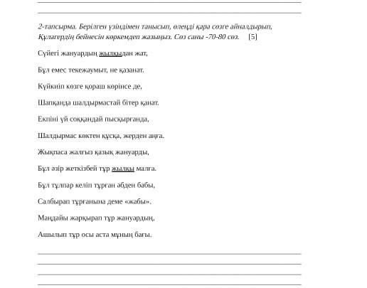 Көзге қораш көрінгенмен Құлагер сүйегі өзге жылқылардан бөлек жануар. Шапқанында оған қанат біткендей, ұшқан құсқа да желген аңға да жеткізбейді. Ол пысқырған кездегі екпіні үйді жығып құлатардай ғой, шіркін. Бұл әбден бабы келіп тұрған тұлпар, әзір ешқандай жылқы малын өзінен оздырмайды. Оның салбырап тұрған түріне қарап "жабы" деме. Жануардың маңдайы жарқырап, осы аста бағы ашылмақ .