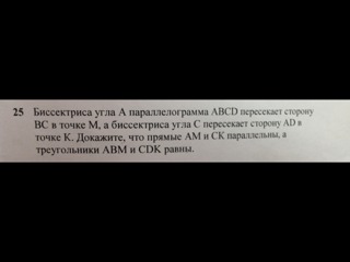 докажем что ΔСДК=ΔАВМ так как у обеих треугольников все углы равны и есть две стороны которые между собой равны(АМ=СК; АВ=СД) то эти треугольники тоже между собой равны