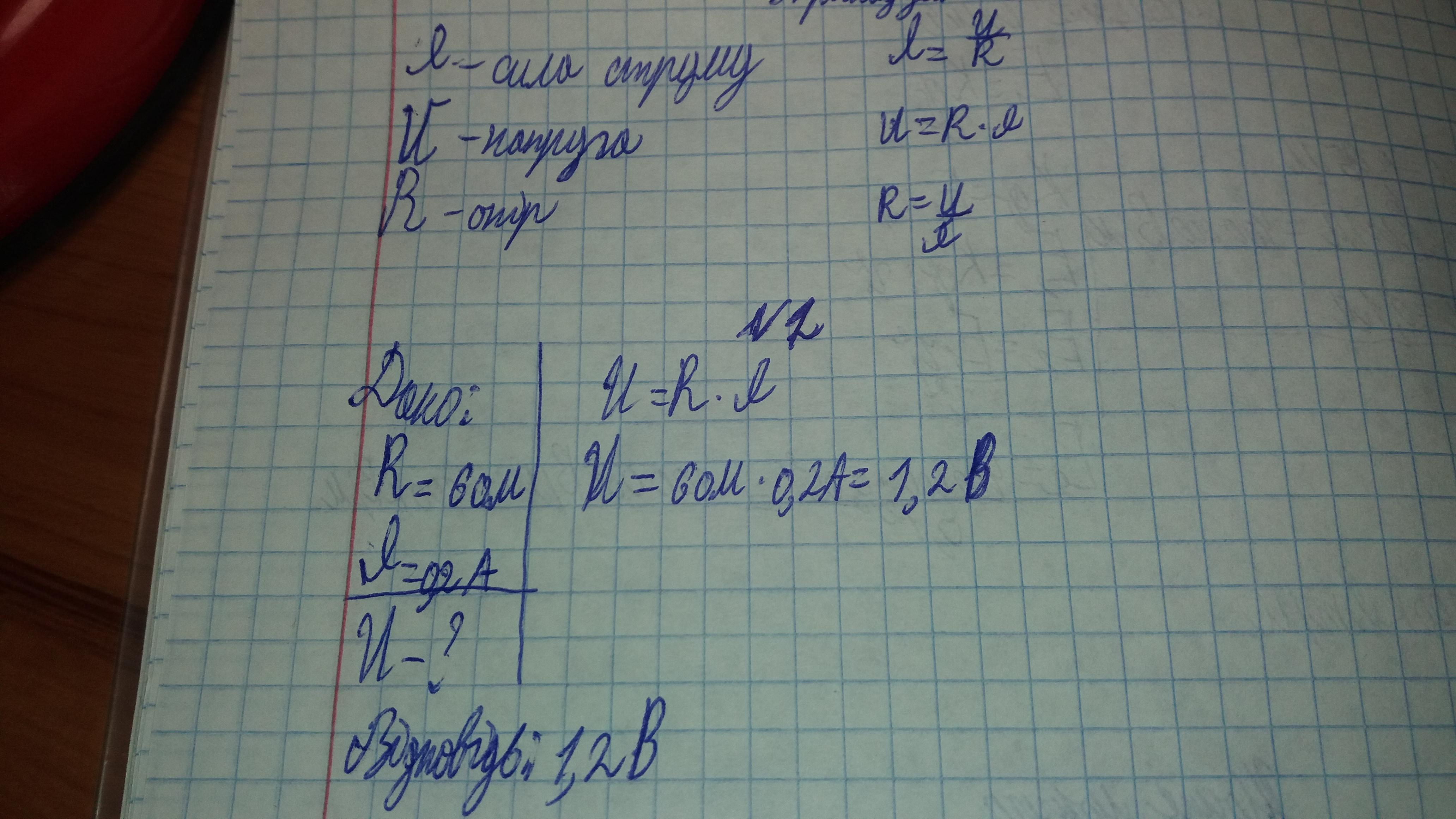 У провіднику з опором 6 Ом, сила струму, що протікає через цього 0,2 A. Визначте напругу на кінцях провідника.