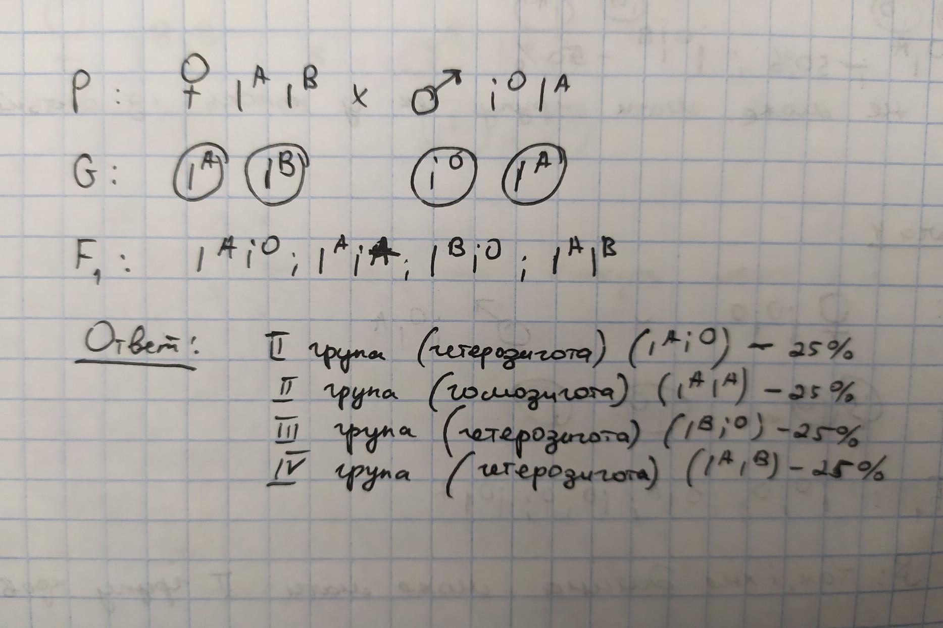 Я решила выбрать |V и || (гетерозиготную) группы крови, так как там не указаны, какие нужно использовать.