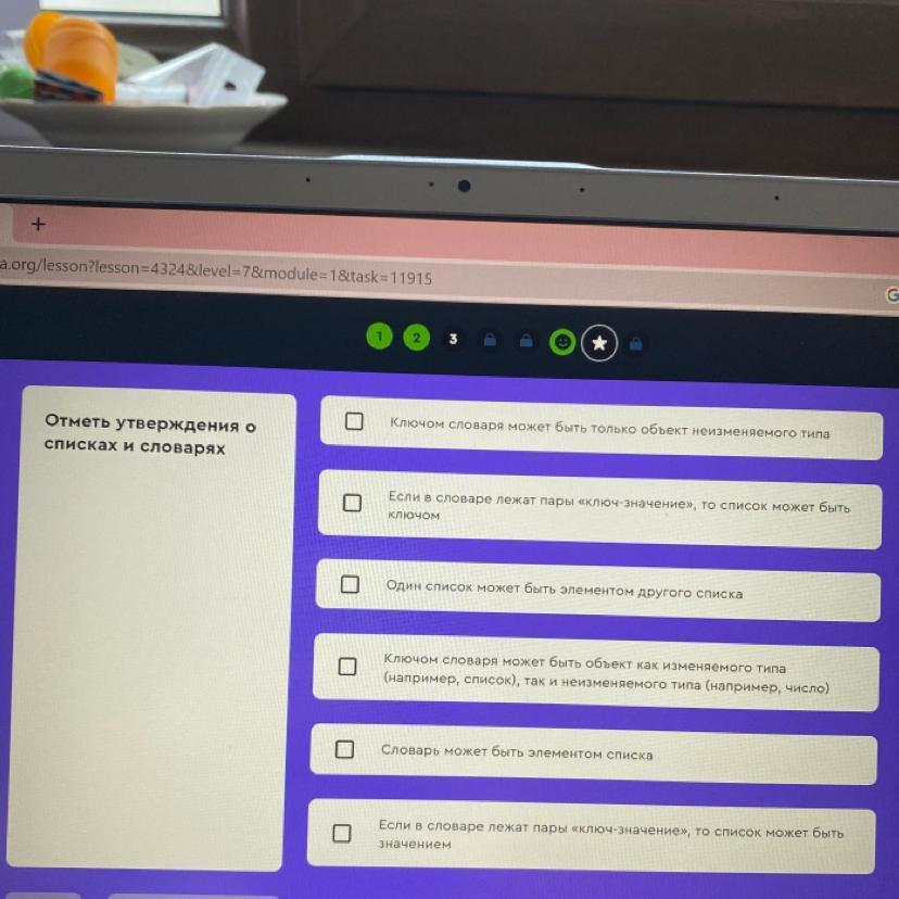 ключем словаря может быть только неизменяемые/хэшируемые объекты