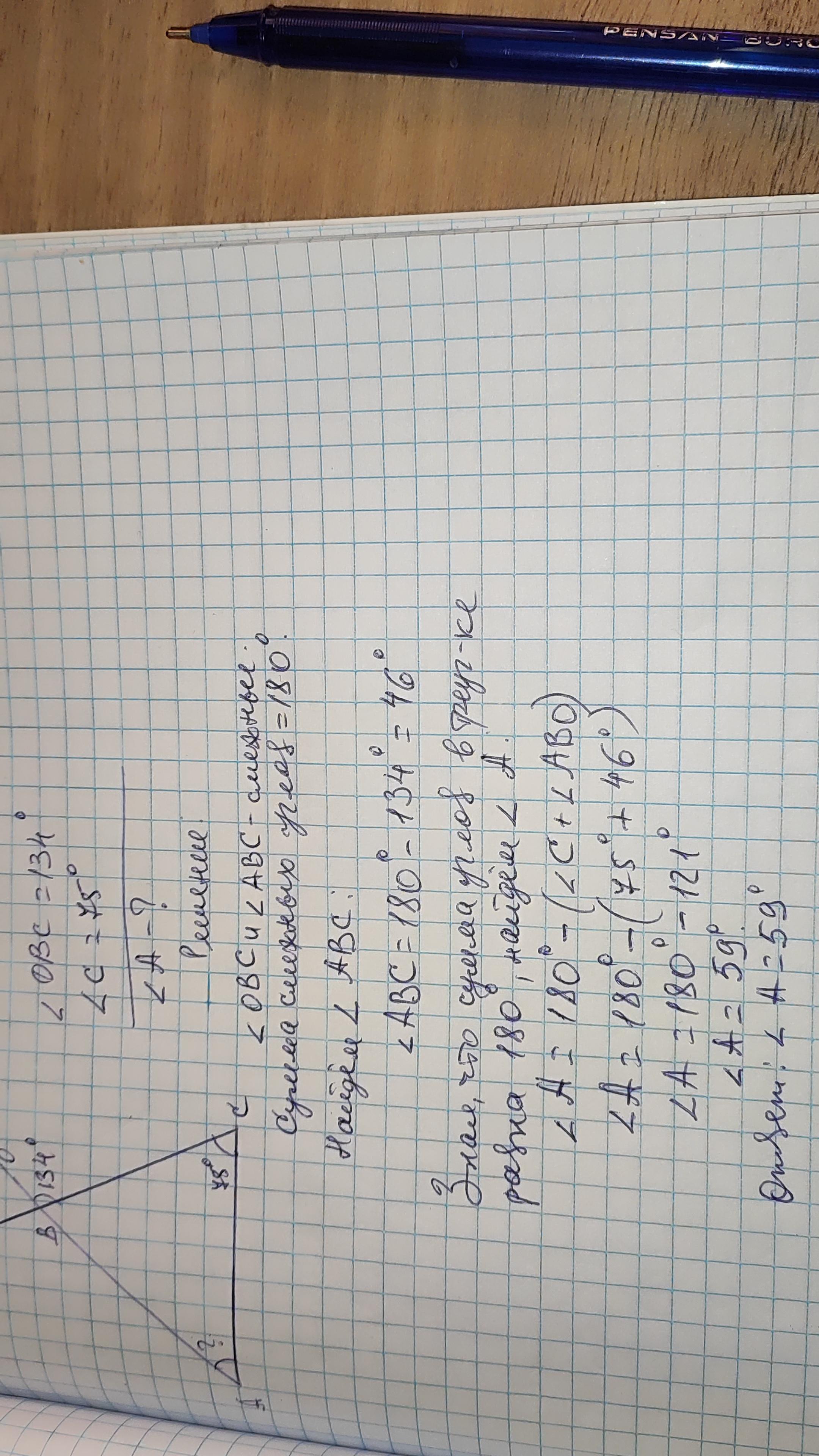 Теорема про зовнішній кут: зовнішній кут трикутника дорівнює сумі двох внутрішніх кутів трикутника не суміжних з ним.