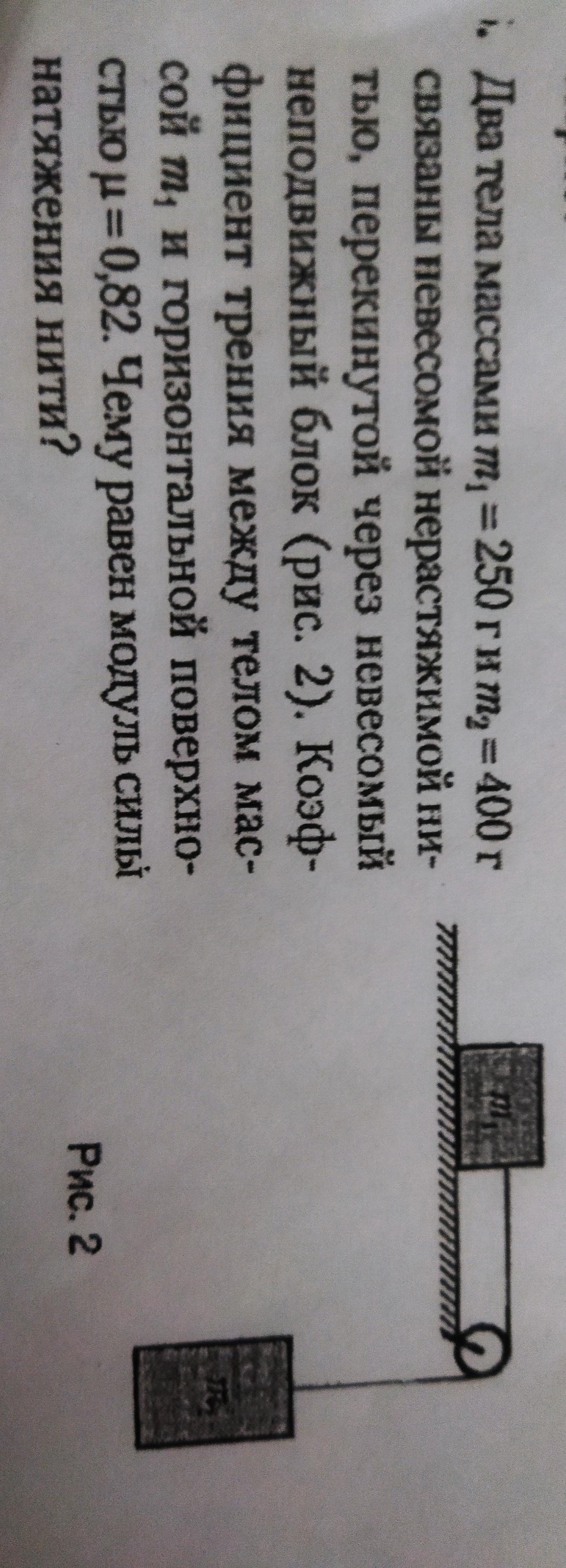 T=m1*m2*g*(1+μ)/(m1+m2)=0.25*0.4*10*(1+0.82)/(0.25+0.4)=2.8 H