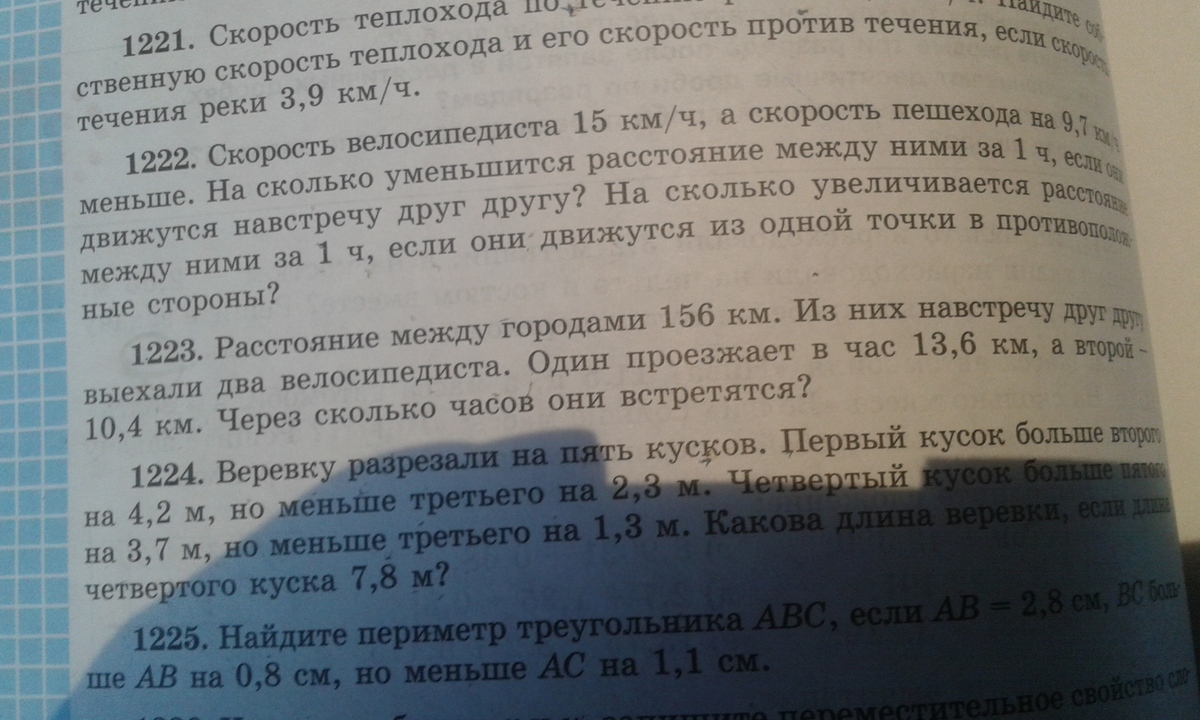 1. 13,6+10,4=24 км скорость двух велосипедистов 2. 156:24=6,5 часов Ответ: через 6,5 часов встретятся велосипедисты)))))))