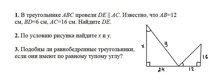 Тр-к ABC подобен тр-ку DBE по 1-му признаку подобия ( по двум соответственно равным углам),
