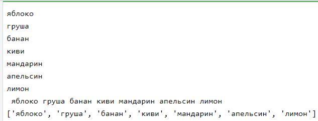 fruits = ["яблоко", "груша", "банан", "киви", "мандарин", "апельсин", "лимон"]