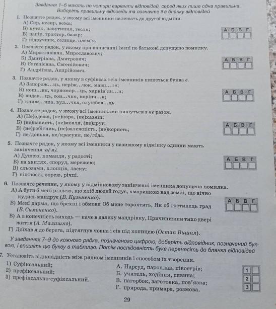 1В 2Г 3Б 4А 5в 6АГ 7 1) Г 2)В 3)Б