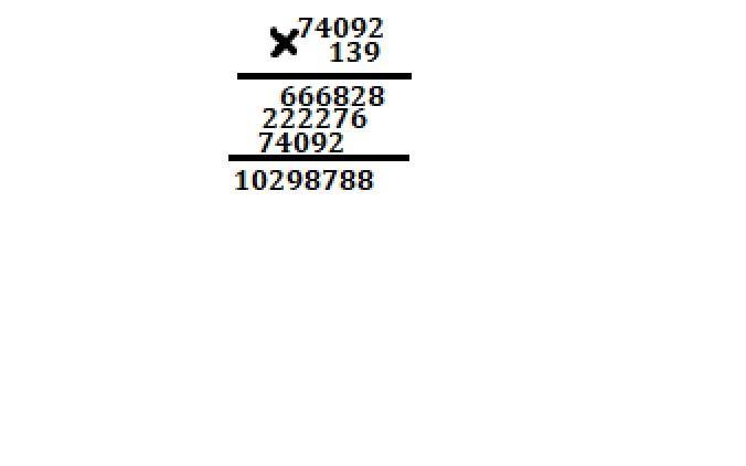 По правилам умножения в столбик нужно каждую цифру первого множителя нужно умножить на крайнюю цифру второго. Делать это нужно справа налево: единицы, десятки, и.т.д. Если результат получится двузначным, под чертой записывается только последняя его цифра.