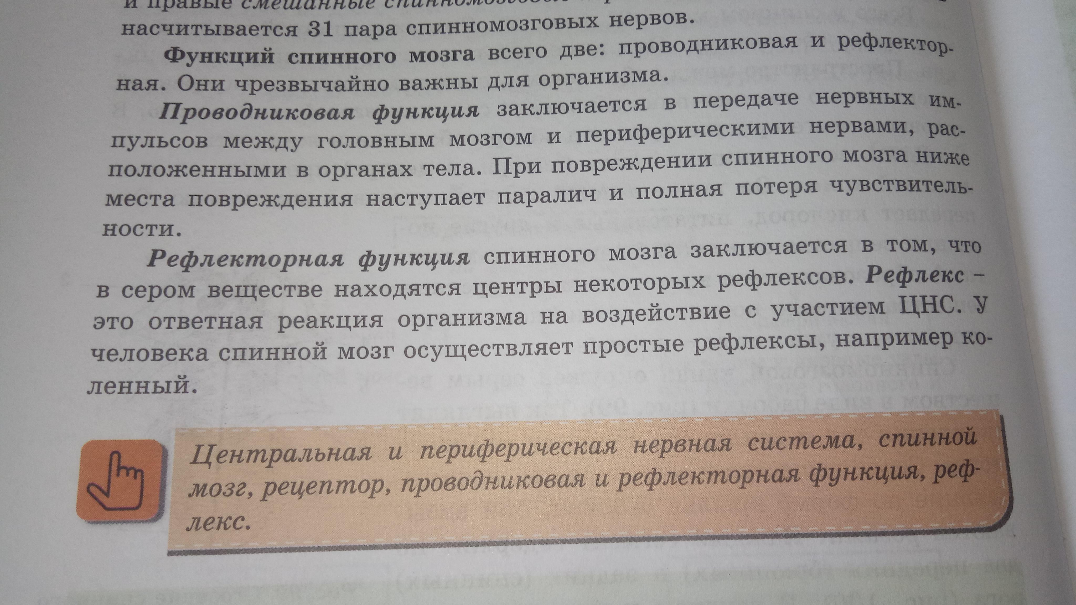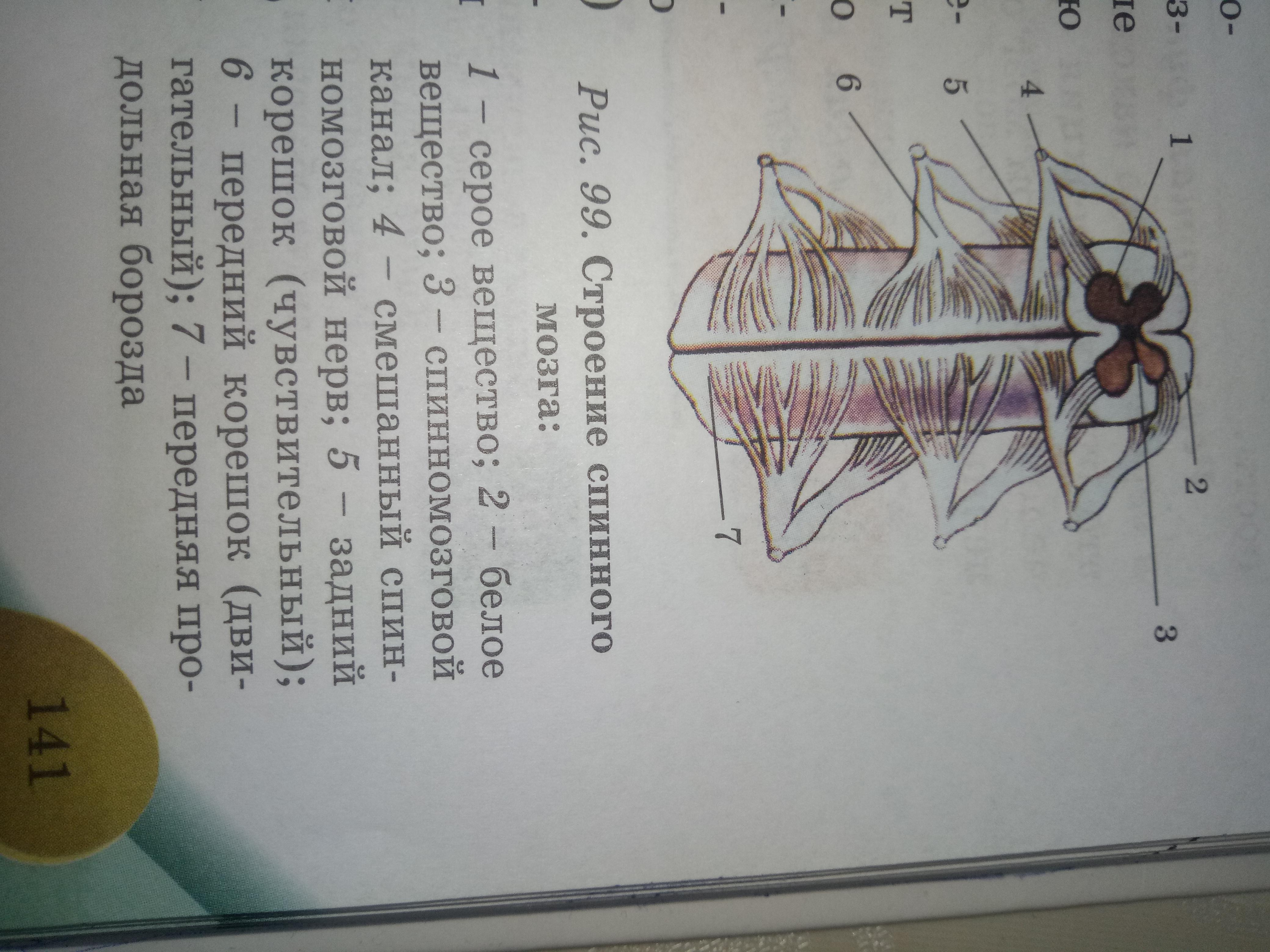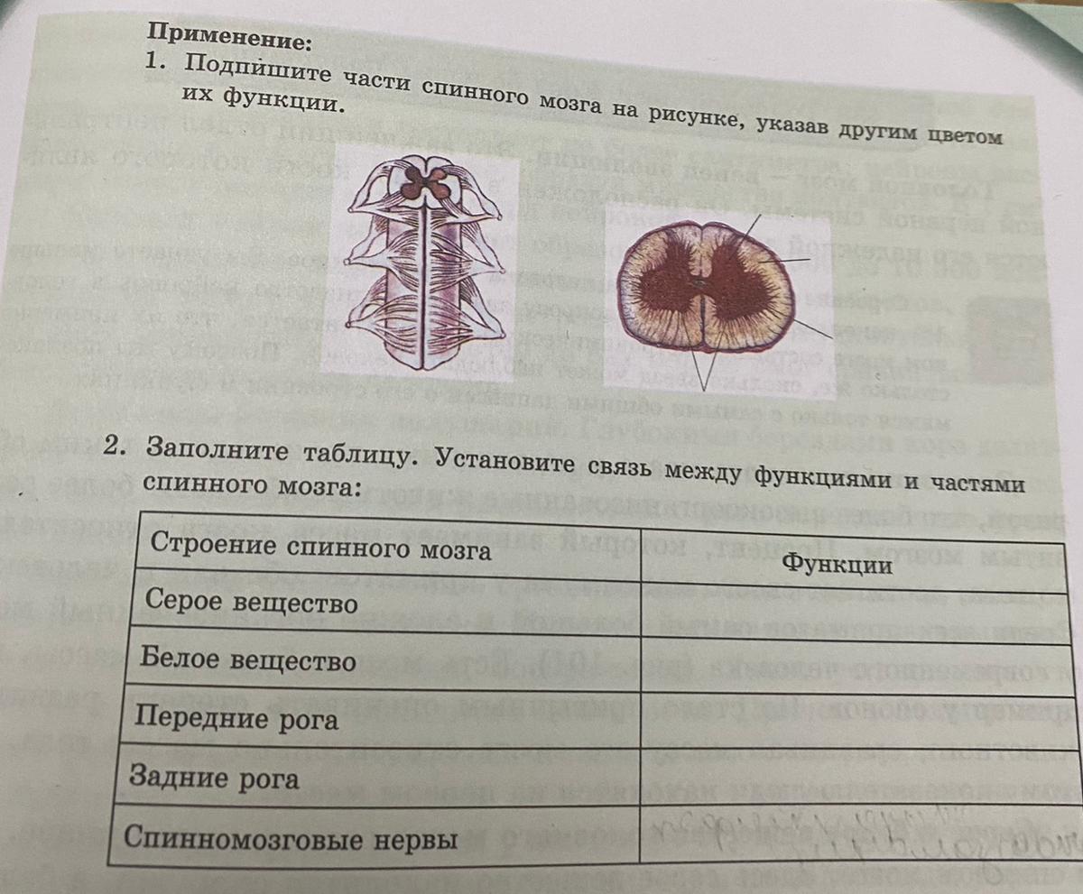 1. Подпишите части спинного мозга на рисунке, указав другим цветом их функции.