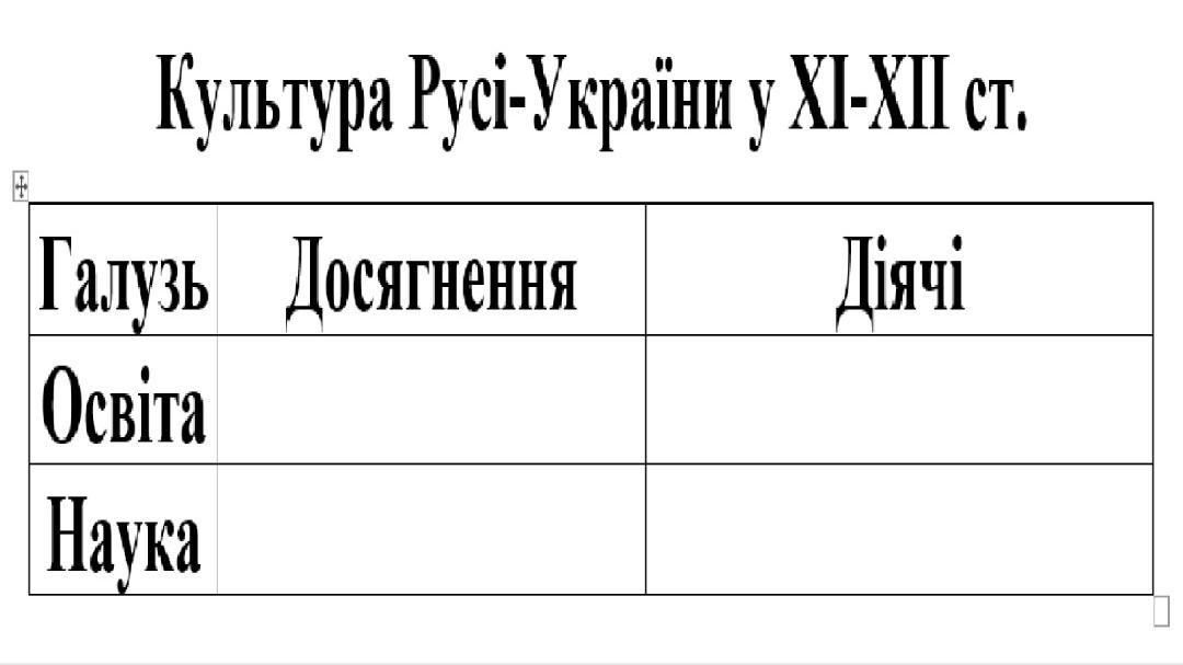 Освіта. Розвиток наукових знань. У другій половині XI – першій половині XIII ст. на Русі продовжували існувати і розвиватися державні і церковні школи, приватне навчання. "Наука книжна" – було не звичайним оволодінням письмом, а освоєння тодішніх наукових знань. Літописець стверджував, що "той, хто часто читає книги, той з Богом бесідує або зі святими мужами".