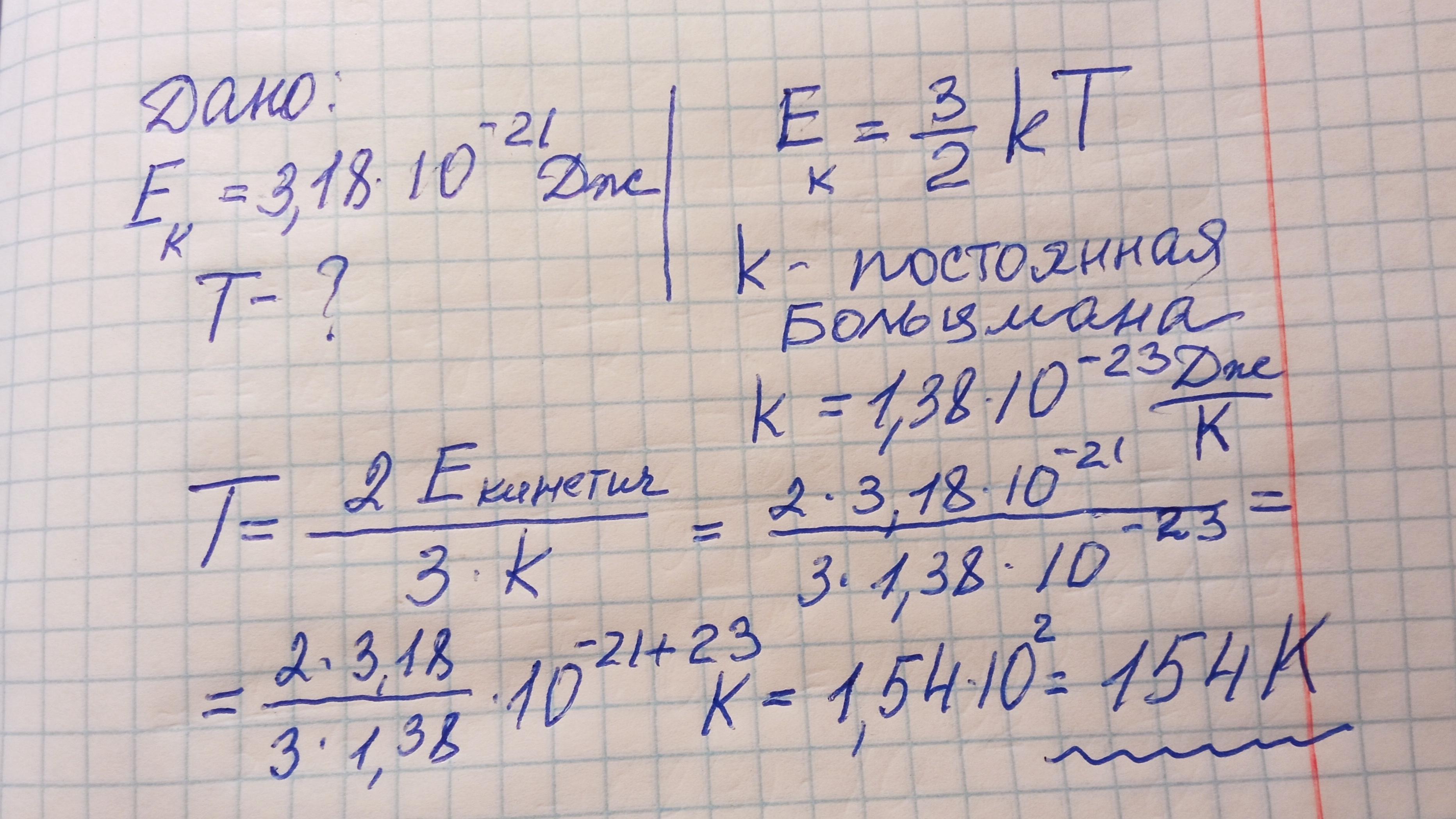 3,18•10-21 Дж. Чому дорівнює температура газу в цьому