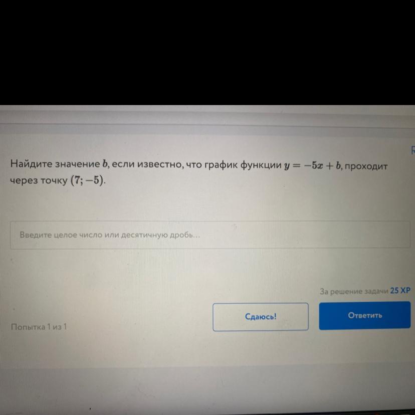 Найдите значение ь, если известно, что график функции у = -5x + b, проходит