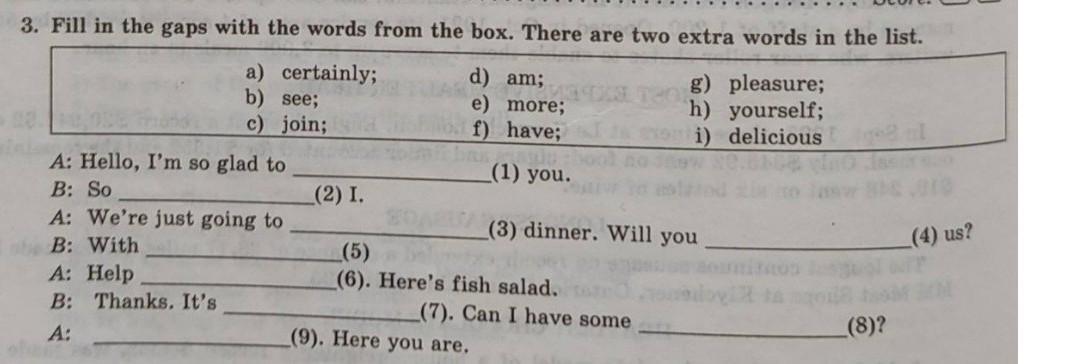 3. Fill in the gaps with the words from the box. There are two extra words in the list.
