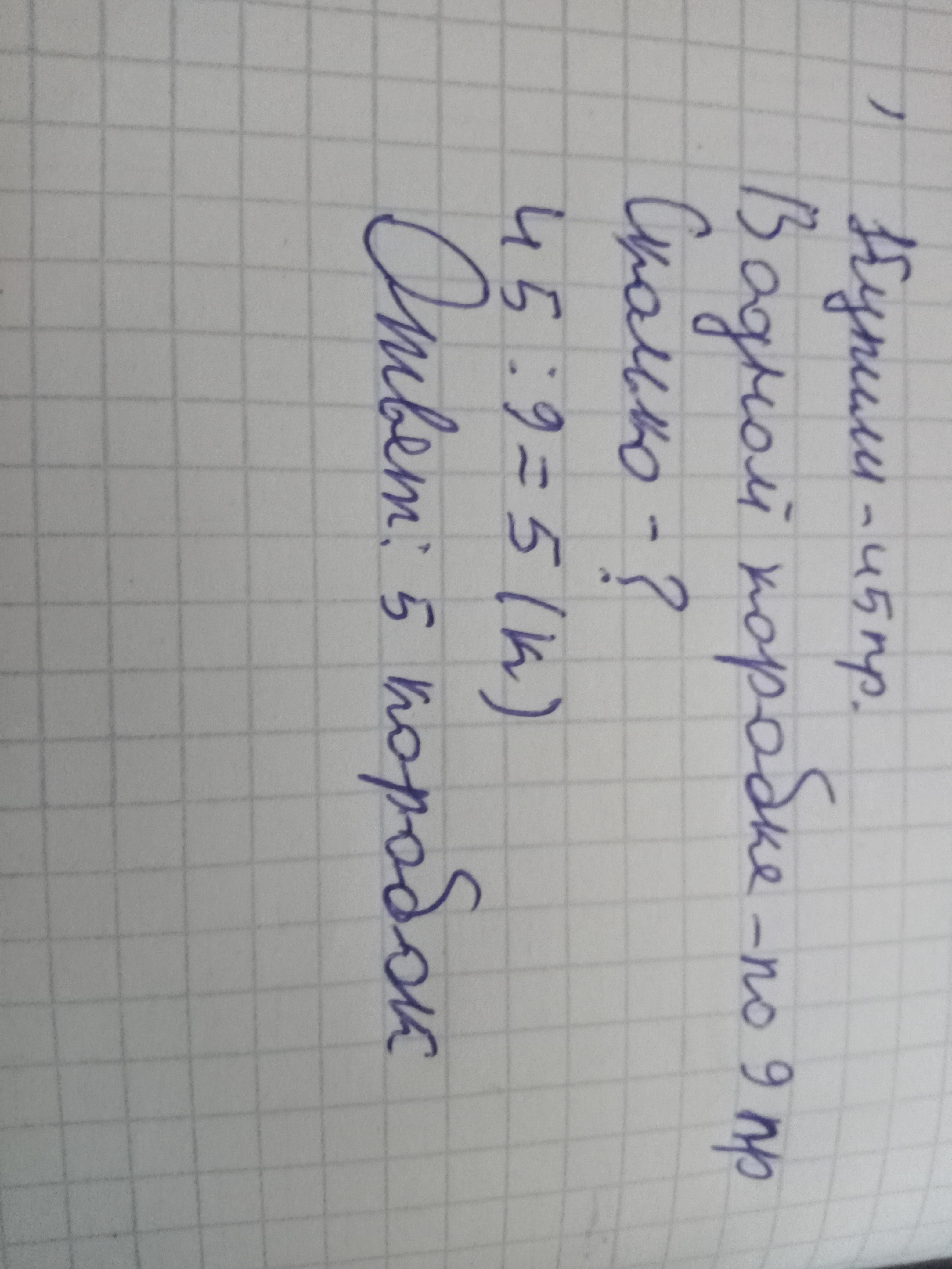Для занятий в спортзале купили 45 предметов,по 9 предметов в коробке. Сколько коробок получилось?