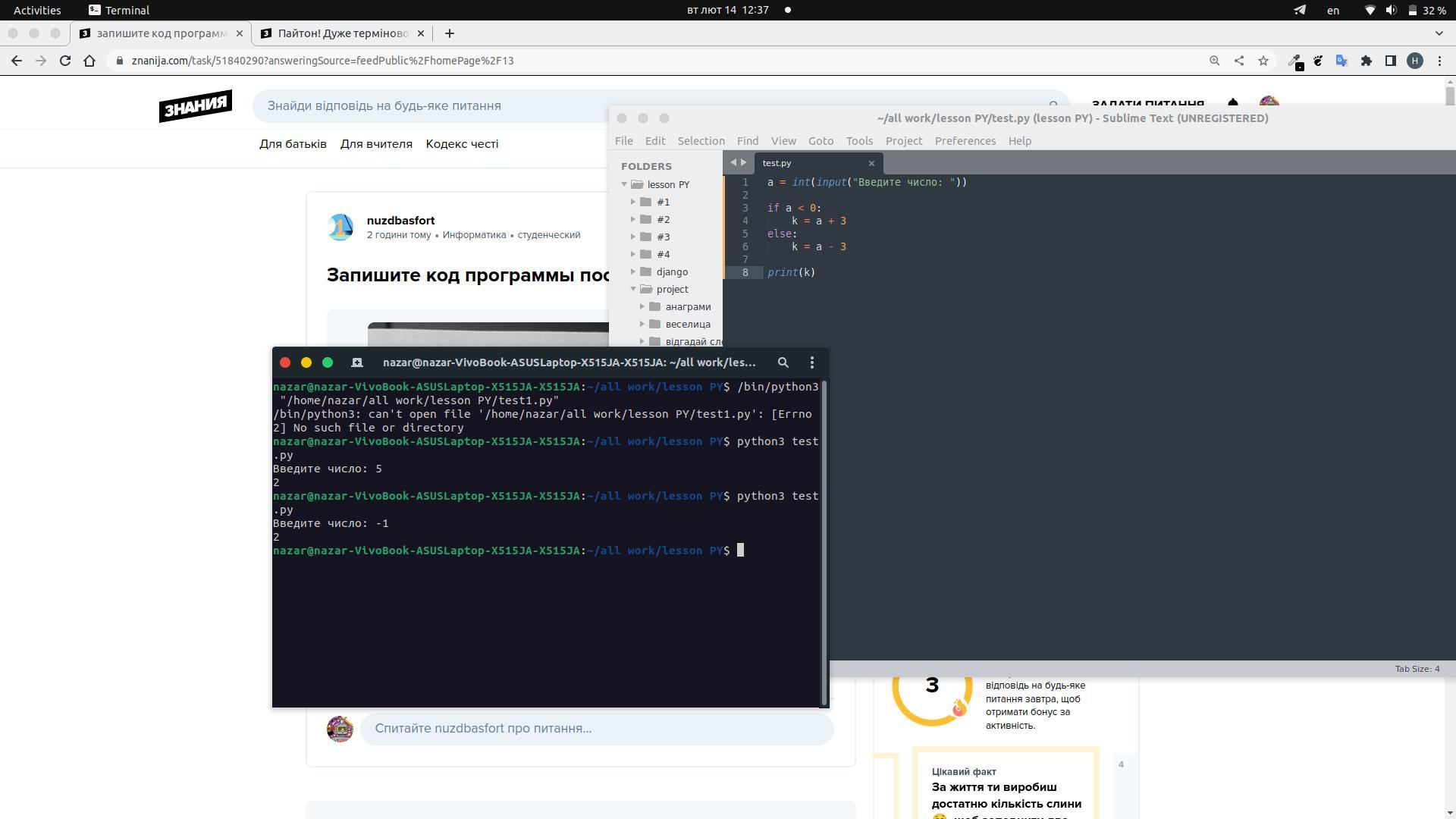 Не хватает всего двух строк. У тебя условие if пользователь ввел переменную ты говоришь если (то есть if) A<0 тогда k=A+3 иначе (else) k=A-3