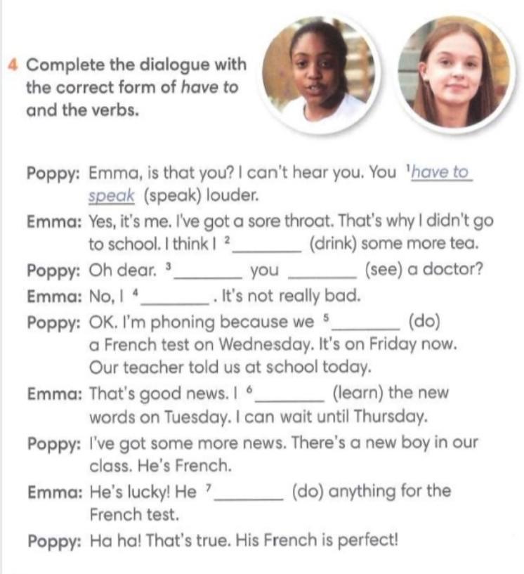 Poppy: OK. I'm phoning because we have to do a French test on Wednesday. It's on Friday now. Our teacher told us at school today.