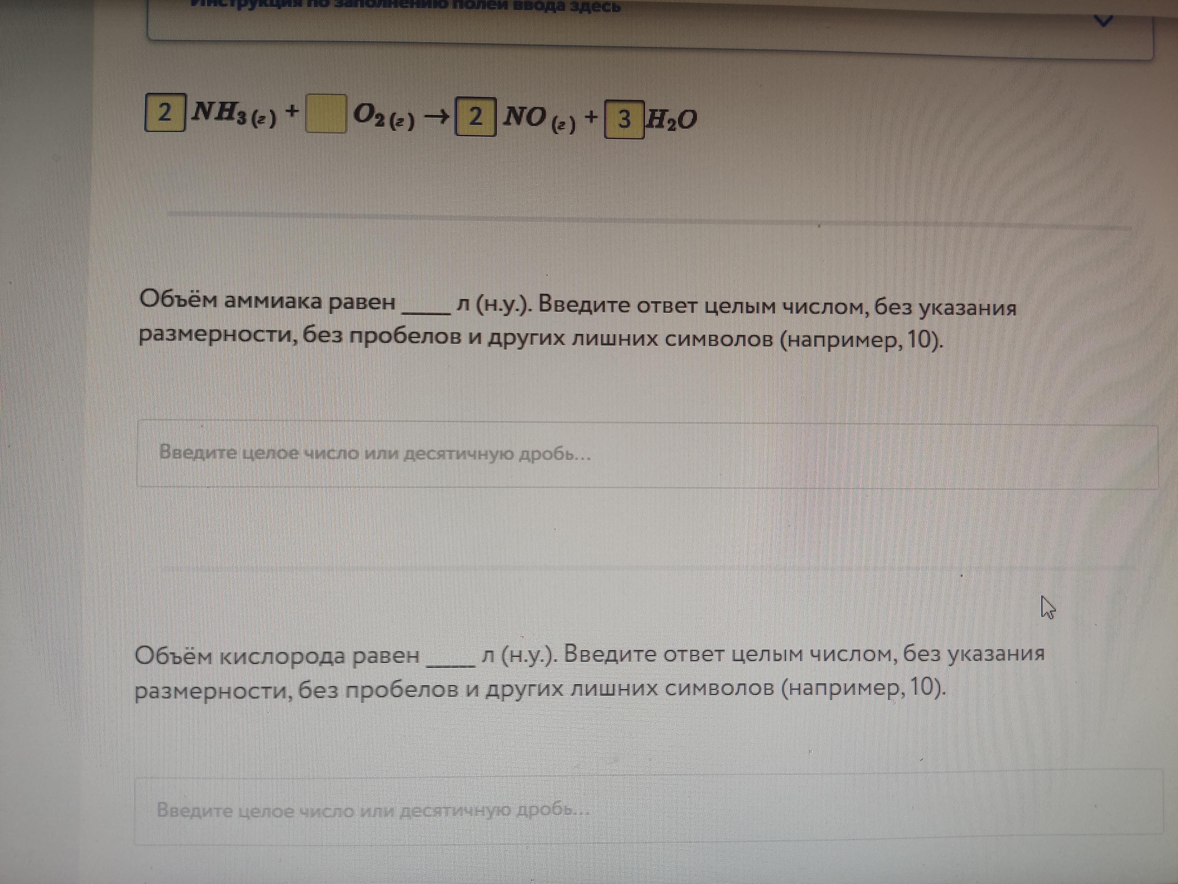 Объем аммиака равен: ___л (н.у). Введите ответ целым числом, без указания размерности, без пробелов и других лишних символов (например, 10).