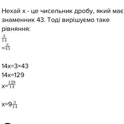 Відповідь: в не можливо бо якщо ми почнемо множити щоб отримати знаменник 43 (14*2=28) (14*3=42) на цьому прикладі ми бачимо що буде 42 тому 43 ніяк не вийде