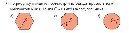 По рисунку найдите периметр и площадь правильного многоугольника. Точка О - центр многоугольника