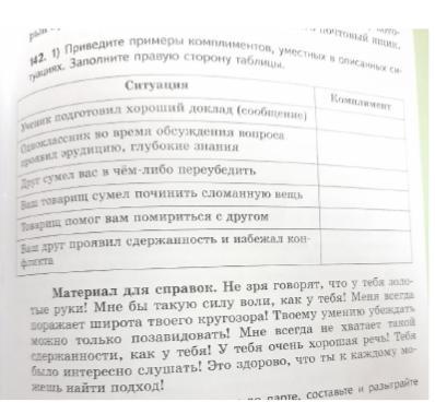 Привести примеры комплиментов, уместных в описанных ситуациях:
