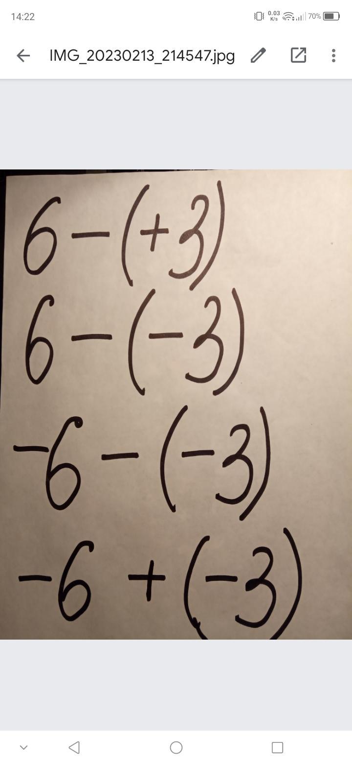 6 -(+3)= 6-3=3