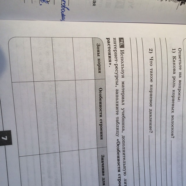 1 Корневые волоски. Основная функция корневых волосков – всасывание воды и питательных веществ из почвы путем осмоса, который происходит на границе двух сред с разной концентрацией жидкостей.