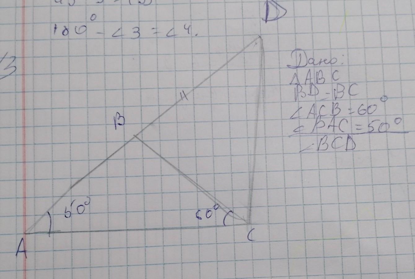 ∠ВDC=∠BCD углы при основании равнобедренного треугольника.