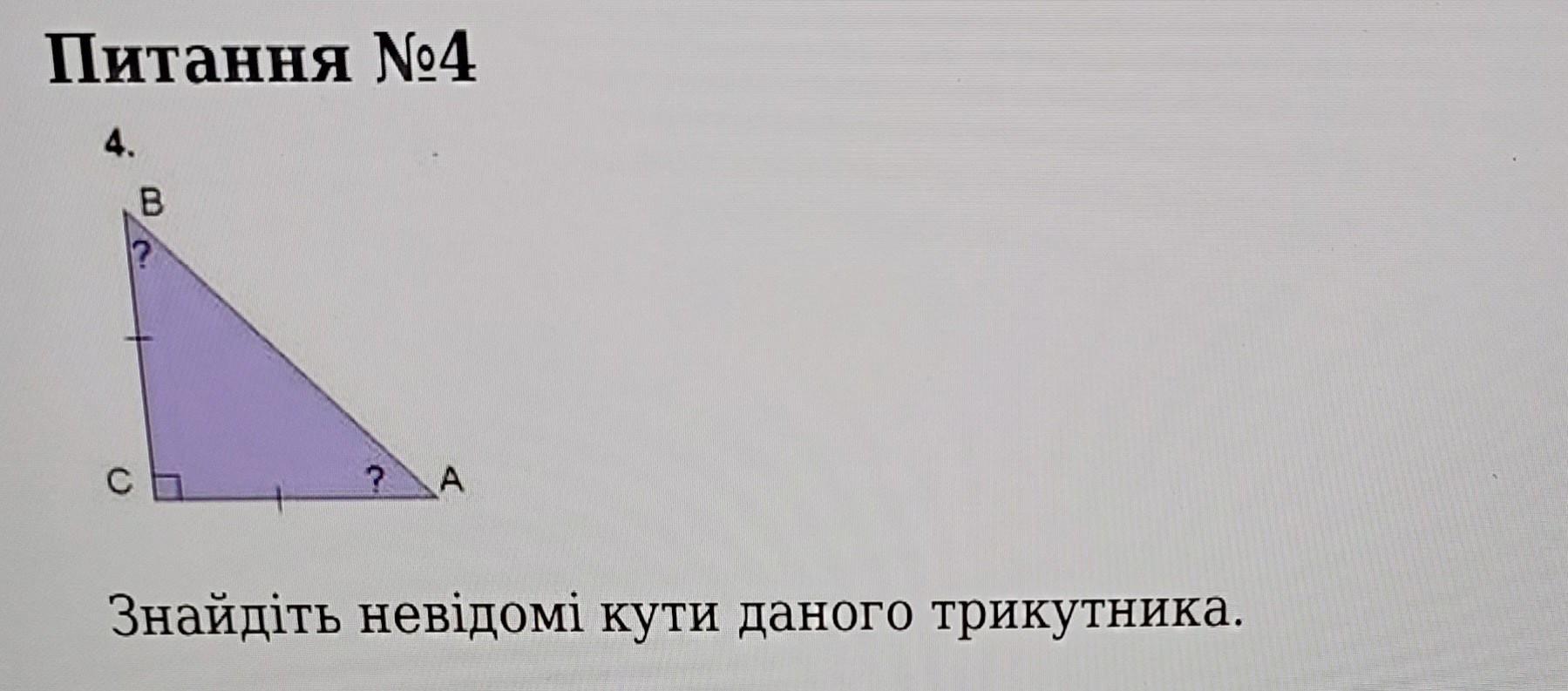 Ответ: Це рівнобедренний трикутник, тому що сторони АС і ВС рівні за умовою. Сумма кутів трикутника = 180 градусів, а кути при основі рівнобедренного трикутника рівні. Тому кут В= куту А =(180-90):2= 45 градусів.