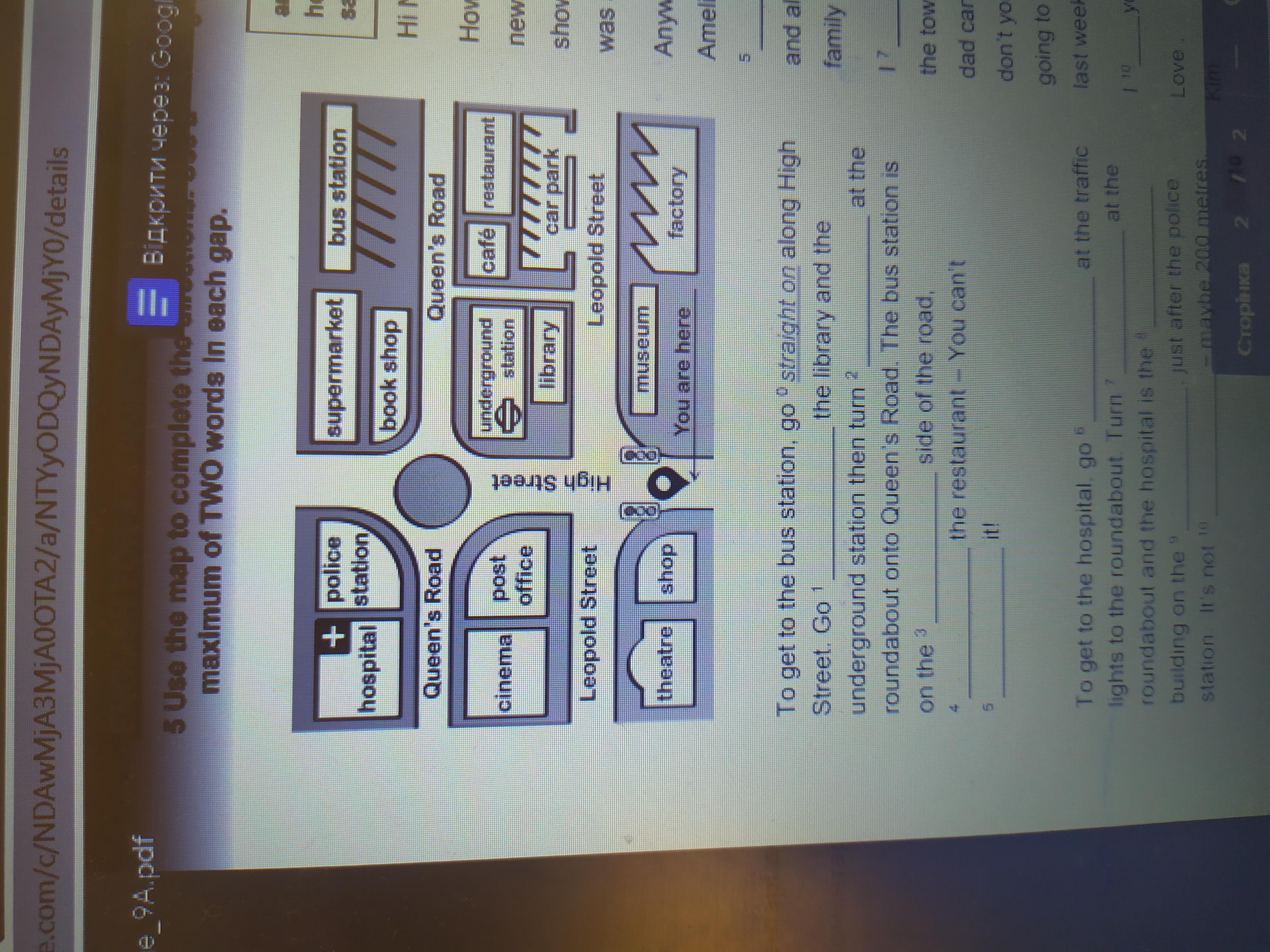 To get to the bus station, go straight on along High Street. Go past the library and the underground station then turn right at the roundabout onto Queen's Road. The bus station is on the left side of the road. Opposite the restaurant - You can't miss it! To get to the hospital, go straight at the traffic lights to the roundabout. Turn left at the roundabout and the hospital is the first building on the left just after the police station. It's not far, maybe 200 metres.