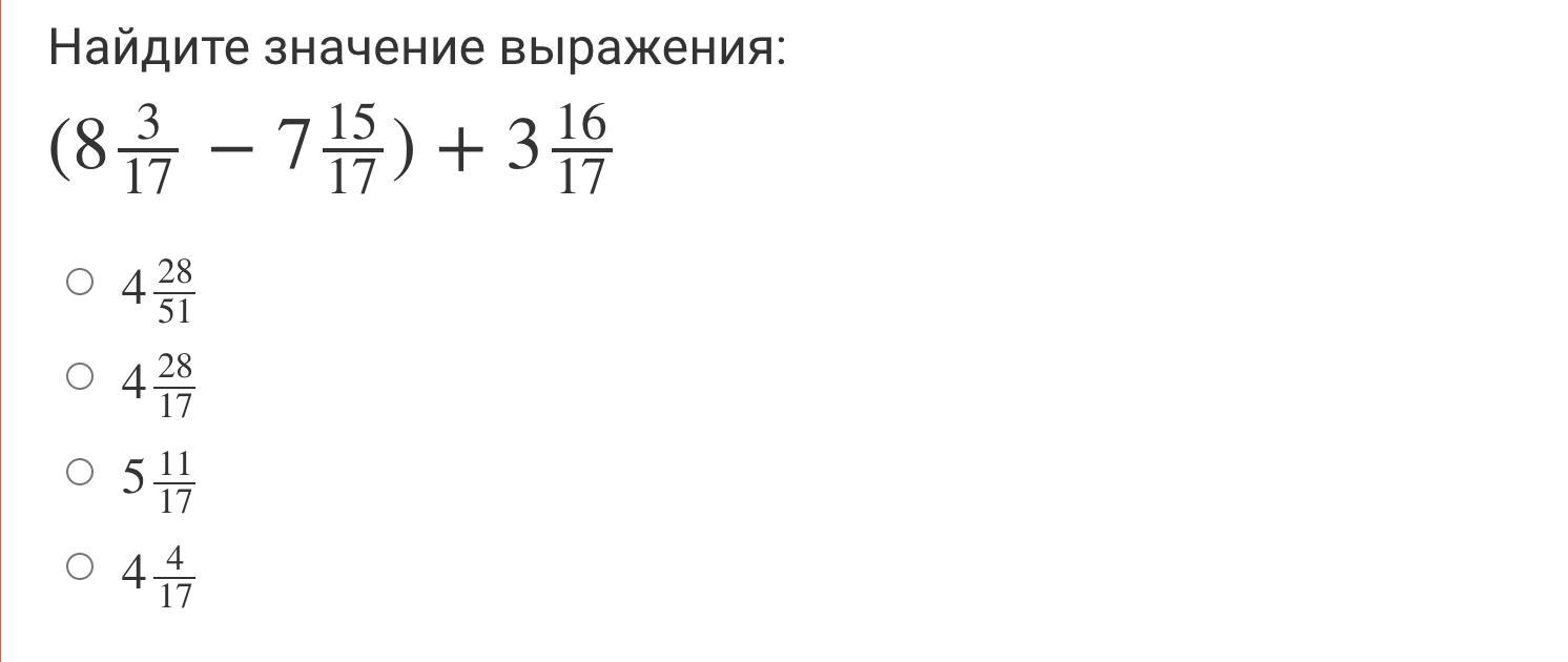 1)Представляем (8 3/17-7 15/17)+3 16/17 в виде неправильных дробей: