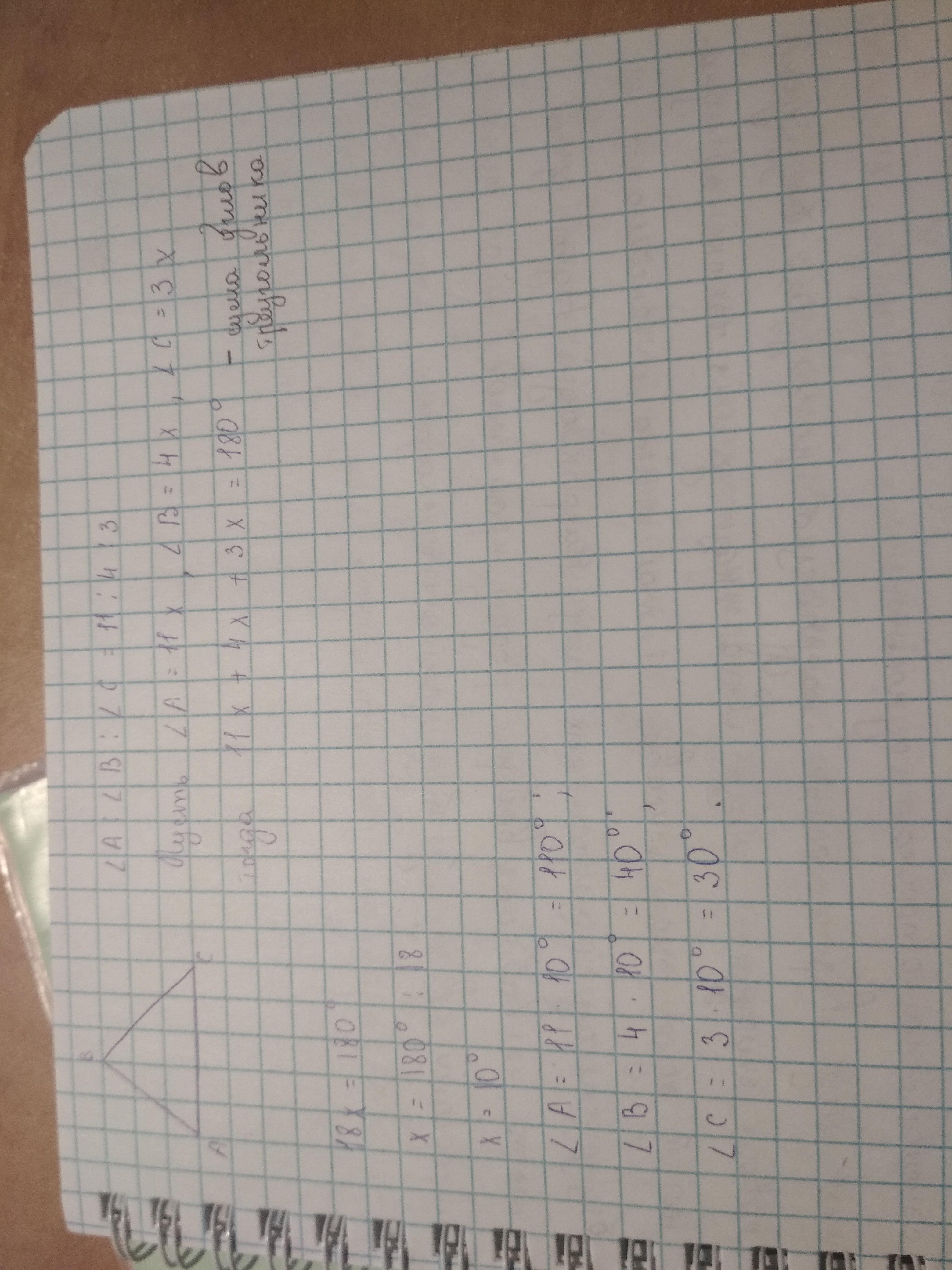 Объяснение: обозначим углы через Х, суммируем и получаем 18х, потом 180°(сумма углов треугольника) делим на 18 и получаем Х. А там дело за малым, высчитываем значения