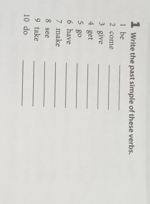 1)was were 2) came 3)gave 4)got 5)went 6)had 7)made 8)saw 9)took 10)did