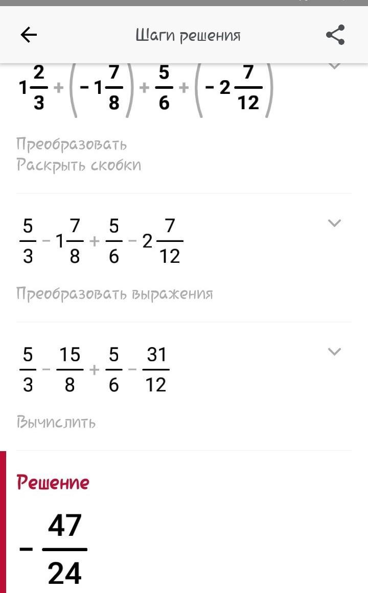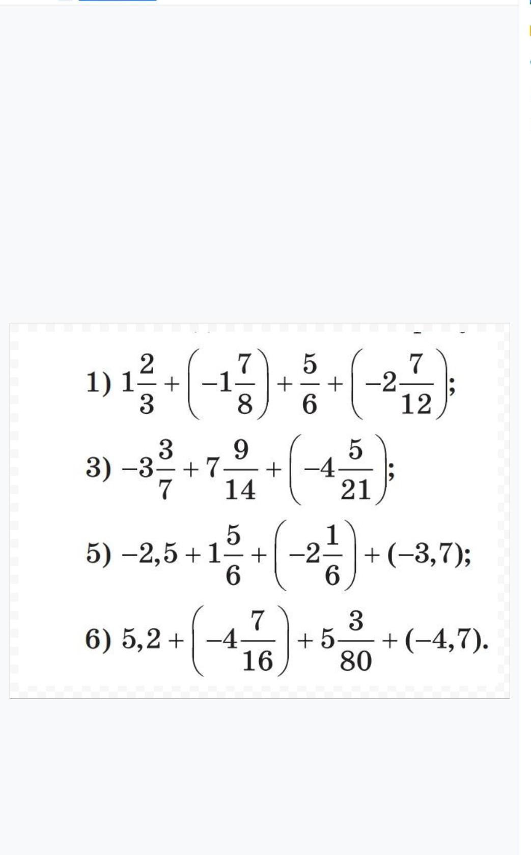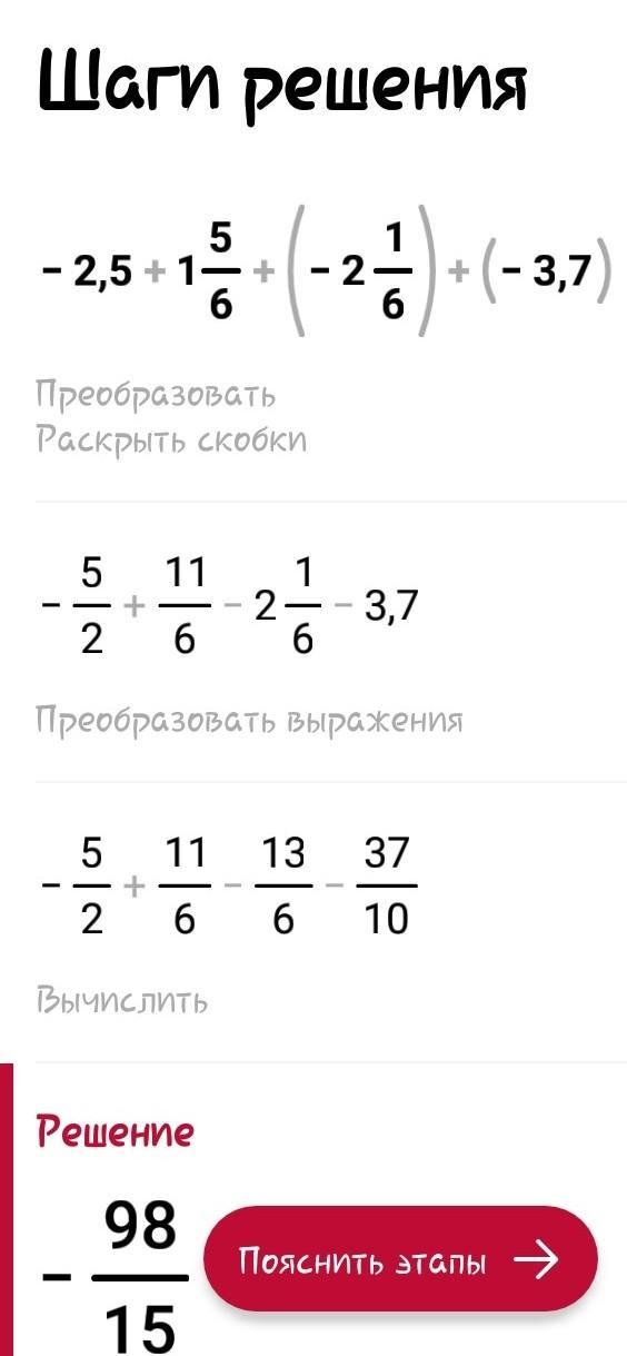 5 ) . . . = - 6,2 + ( 1 5/6 + (- 1 7/6 ) ) = - 6,2 + (- 1/3 ) = - 6 1/2 + (- 1/3 ) =