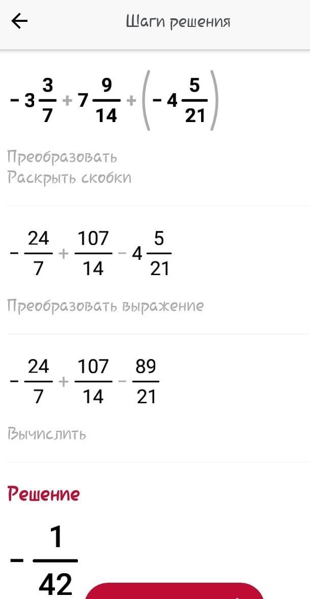 3 ) . . . = 4 3/14 + (- 4 5/21 ) = - 1/42 ;