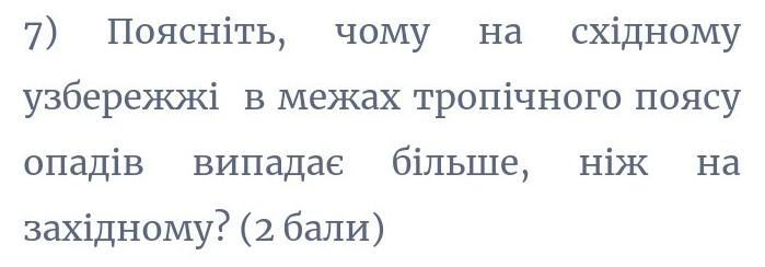 СРОЧНО НУЖНО!!!Поясніть, чому на східному узбережжі в межах тропічного поясу опадів випадає більше, ніж на західному?