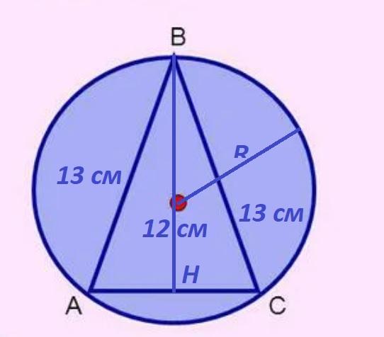 Бічна сторона рівнобедреного трикутника дорівнює 13см, а висота -12см. Знайти радіус