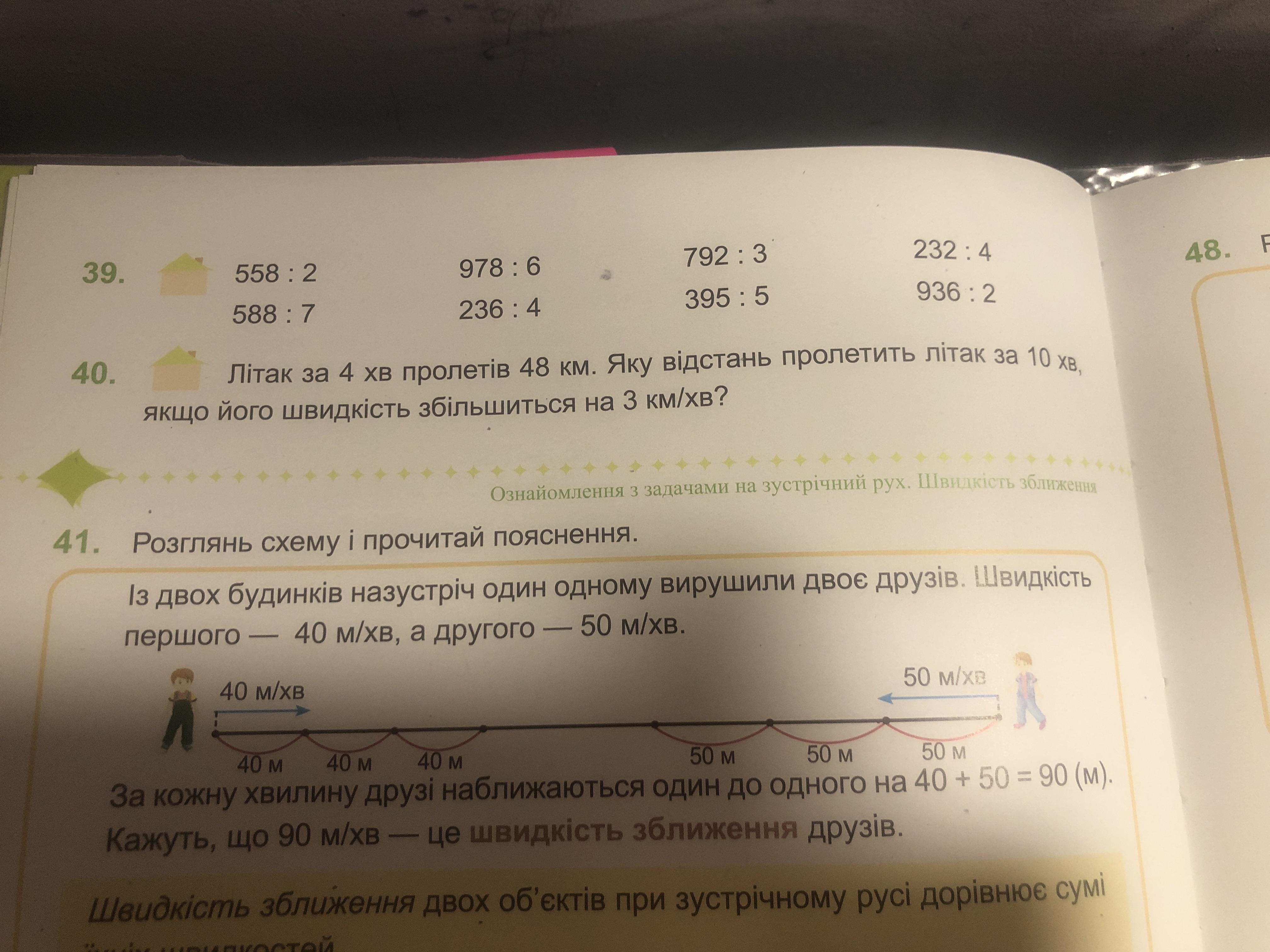 1) 48 : 4 = 12 (км/хв ) - швидкість літака .