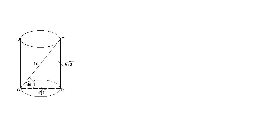 треуг.ACD равнобедр.,AD=6sqrt(2)'это диаметр основания, значит R=3sqrt(2)