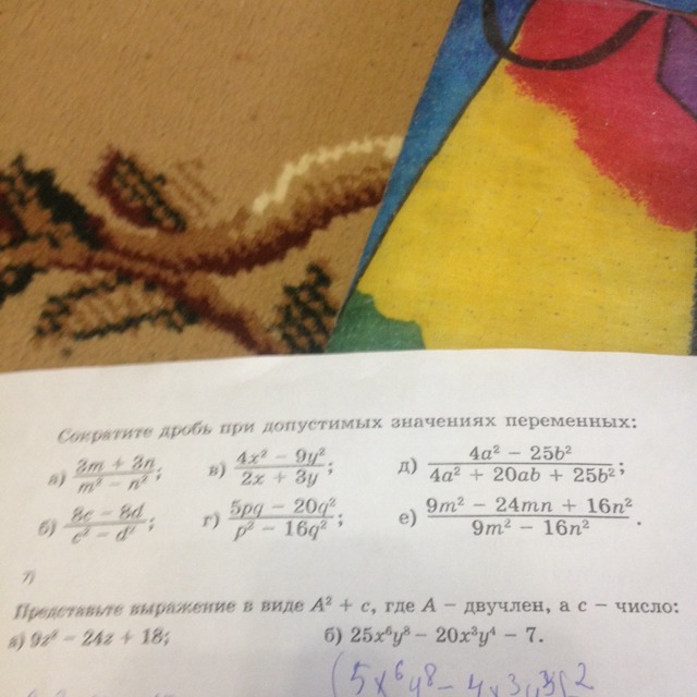 6) ((3m-4n)в квадрате)/(3m-4n)(3m+4n)=3m-4n/3m+4n
