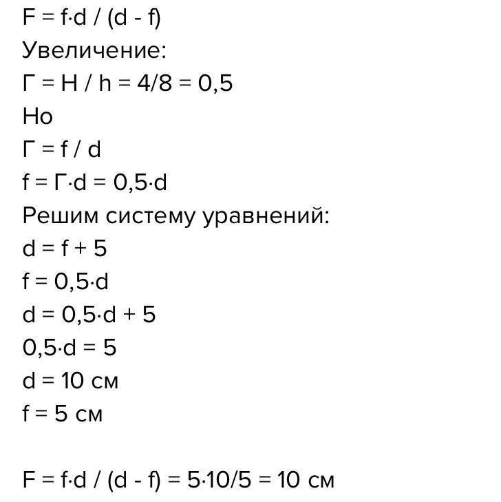 зображення 4 см, відстань між предметом і зображенням 5 см. (Вважайте, що предмет і