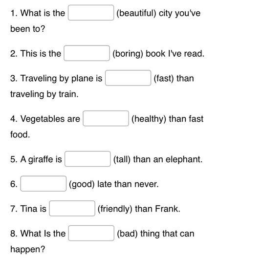 помогите пожалуйста , заполните пропуски ,правильной формой прилагательного в сравнительной степени.